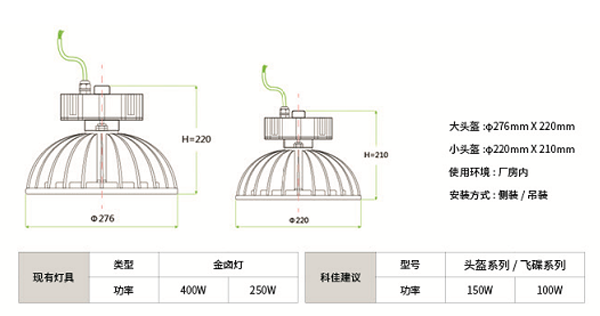 科佳頭盔系列LED工廠燈是將LED光源和固定式支架通過機(jī)械方式連接而成。緊湊輕便,美觀大方,充分體現(xiàn)了LED光源體積小、重量輕的特點。適用于廠房吊裝、側(cè)裝。